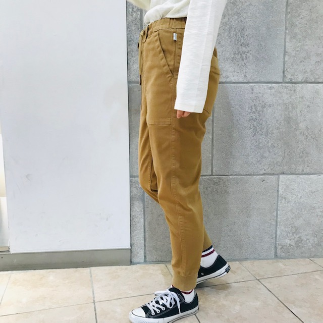 「ワークスウェットパンツ」はスッキリとした細身シルエットのスウェットデザインなのでロンTやチュニックなどとの相性もバッチリです◉