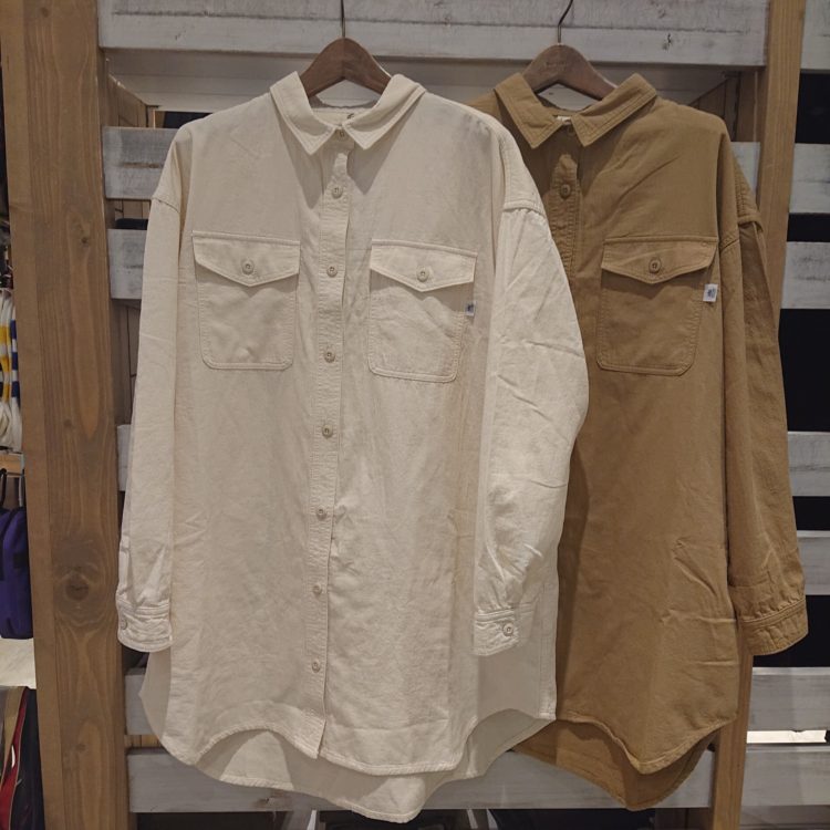 トップスはシャツでも、羽織でもキマる1枚です。ウエストベルトでしめても◎。