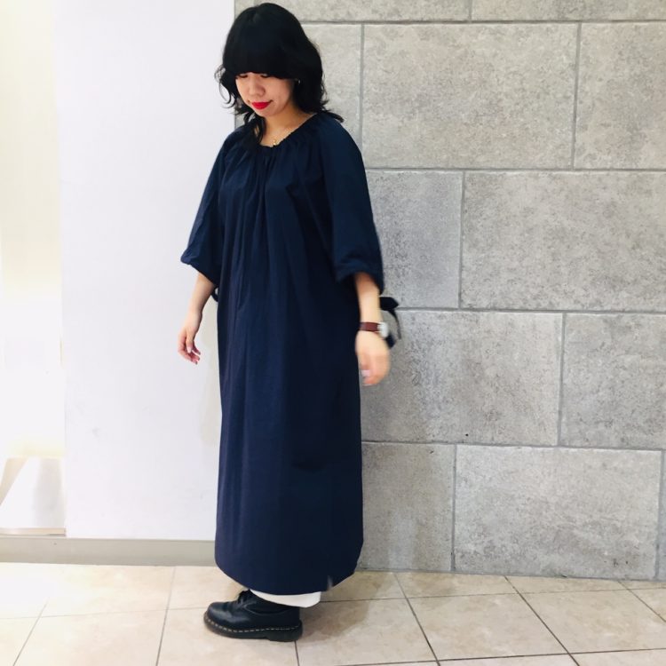 裾にはスリットが入っているので、ワンピースと反対の色のボトムを合わせると歩いた時のチラッと見える感じがカワイイのでオススメ・・・♡