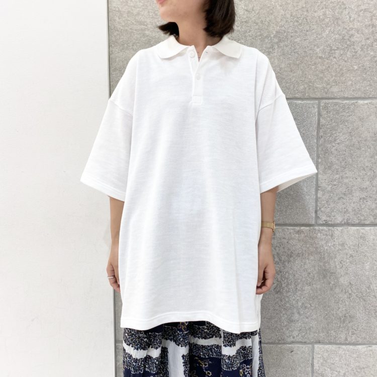 今っぽいオーバーサイズシルエットの半袖ポロシャツ。