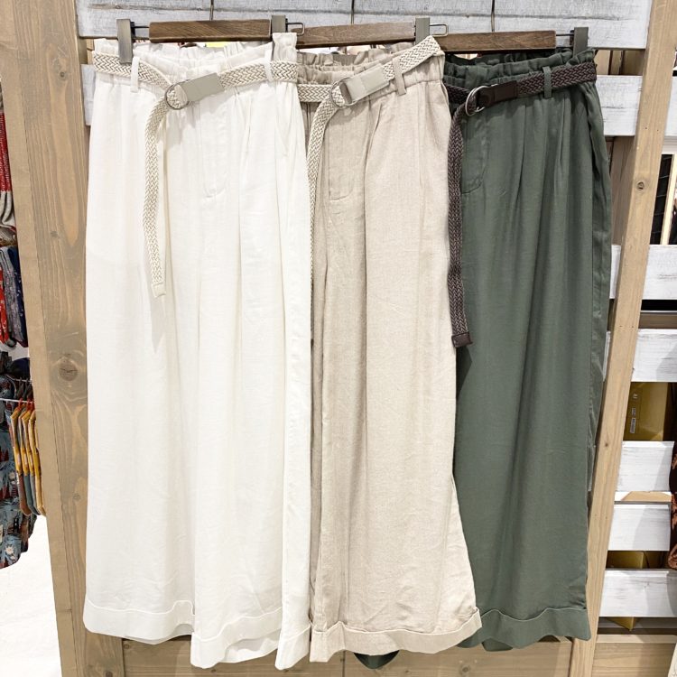 ウエスト周りはゴム仕様になっているのでストレスフリーで穿いて頂けます。ベルトは取り外し可能となっております。