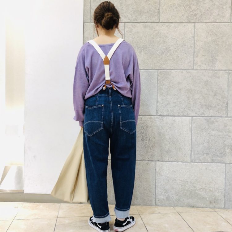 パンツはウエスト高めに穿き、トップスとのバランスを取りました^^