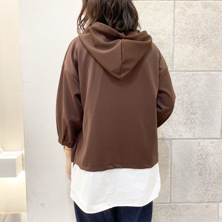 ZAMPA特有のハリ感ある生地がパーカーのカジュアルさを軽減して、大人っぽく着こなせます。