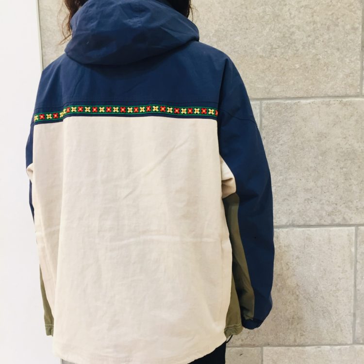 元々付いてる襟を外して、フードと裾を付けてみましょう。こんな感じになります!!