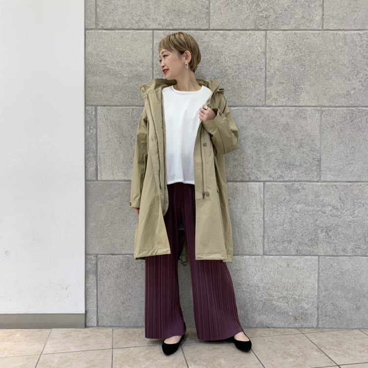 あえてアウターはベージュをON。