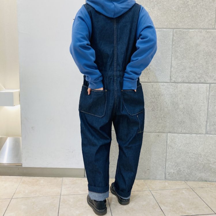 背中がすっぽり覆われるオーバーオールは着ていて安心感があります。