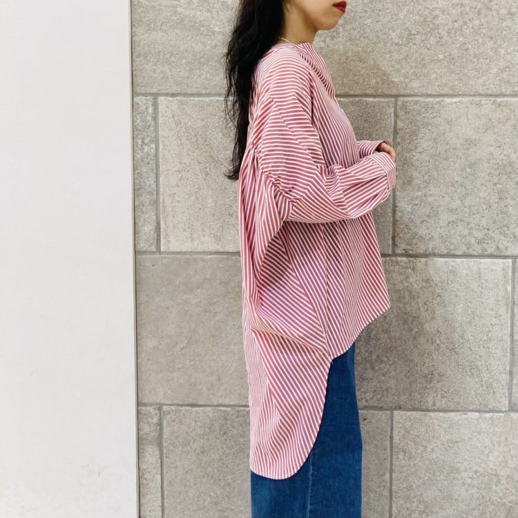 デニムにこのストライプシャツだけでコーデは完成です◎テクニック要らずのこちらのシャツ、是非ともご試着して頂きたいです!