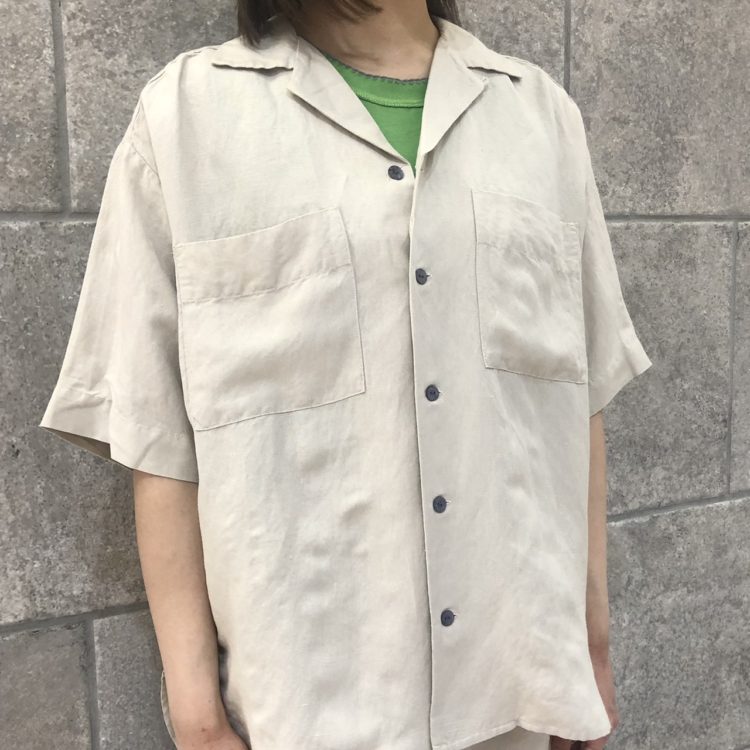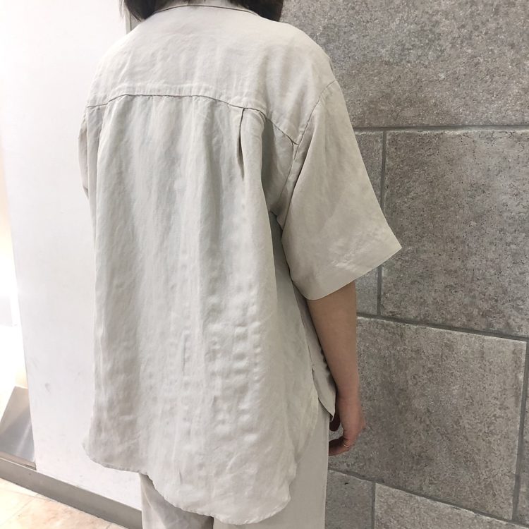 サラッとした着心地の開襟シャツは夏1枚持っていると便利!無地なので色物柄物何でも合わせやすくて万能です。ゆったりと着られて、羽織にもなるのが良いですよね^^