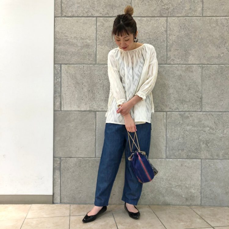 白ブラウス×ジーンズで