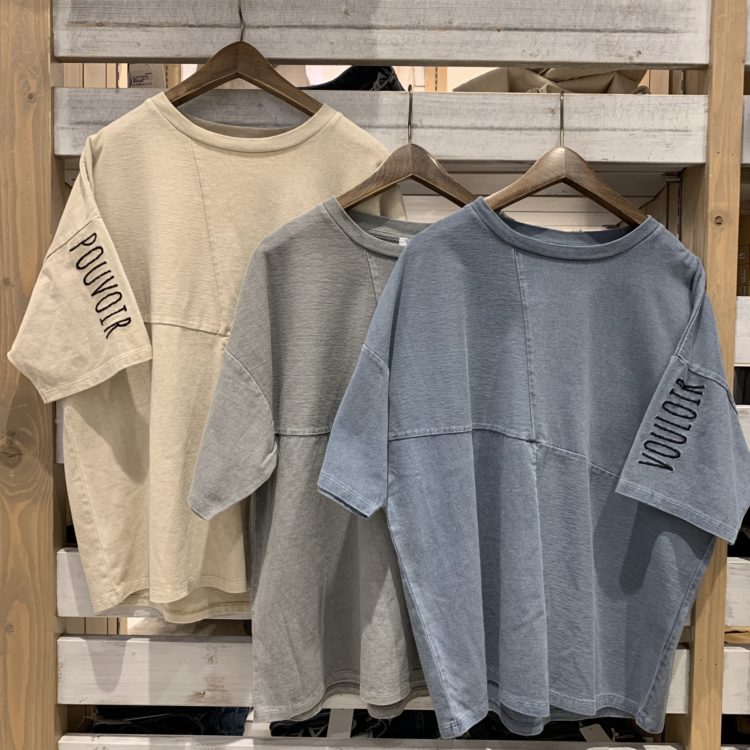 【OE天竺ピグメント加工切替クルーT Back刺繍】