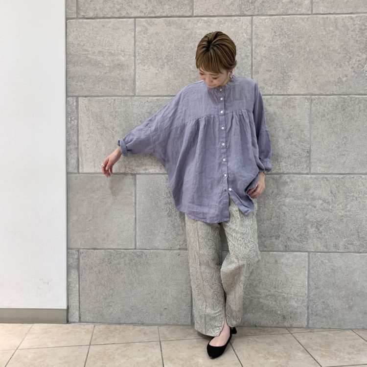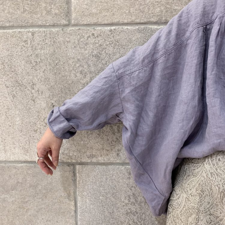 【別注21フレンチリネン日本製品染ポンチョスタンドシャツ】