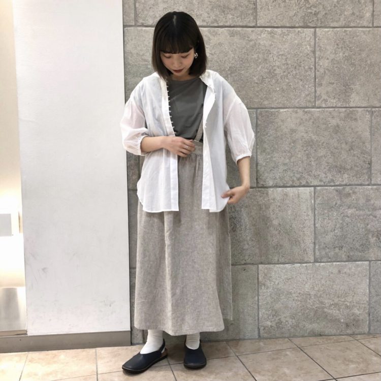 肩紐は長さ調節可能なので、お好きな丈感にすることができます^^ポケットも付いているのが嬉しいポイント◎リネン素材のスカートで、快適に夏を過ごせますよ〜!