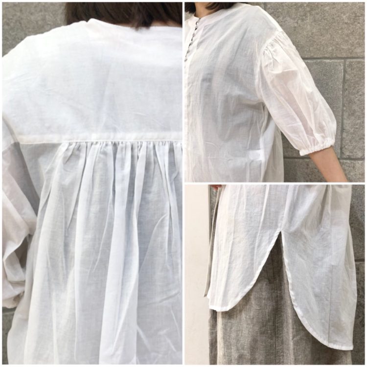 ふんわりとした袖や背中部分のギャザーが女性らしいブラウスです。