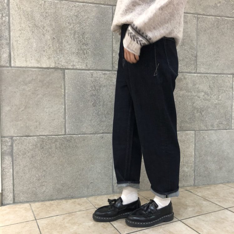 合わせたパンツは、【Cafetty】の新作です!ストレッチが効いた穿き心地抜群な1本。腰元はゆったり、足首はすっきりとしたテーパードシルエットです。