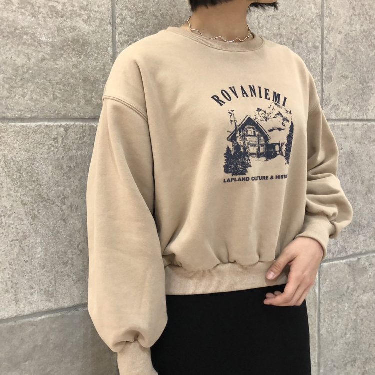 ゆったりとした袖が可愛いです♩丈はやや短めなので、丈の長いボトムやボリュームのあるアイテムとも合わせやすいですよ!
