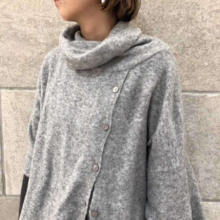 襟元にボリュームのあるタートルには