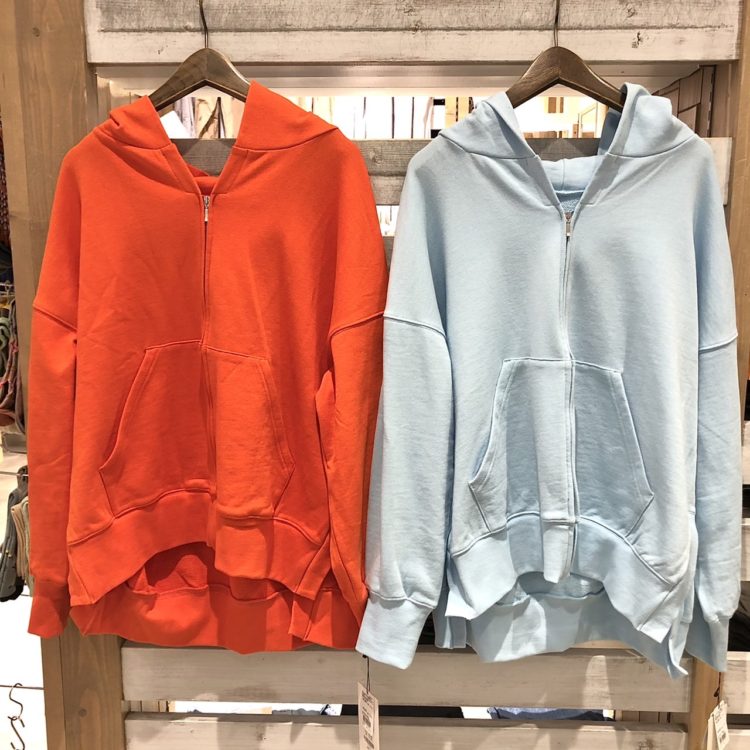2コーデ目のメインアイテム、【CLOSHE】の裏毛フーディーです!こちらも綿100%。柔らかい肌触りでロングシーズン着られます♪