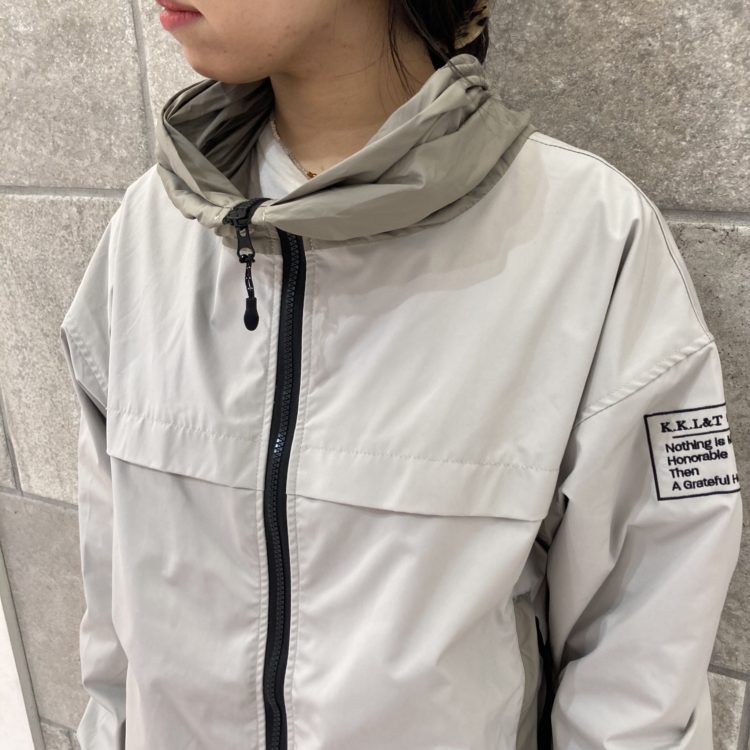 マウンテンパーカー系のアウターはどうしてもレジャー感が強くなりがちですが、こちらのアウターはタウンユースなデザイン!