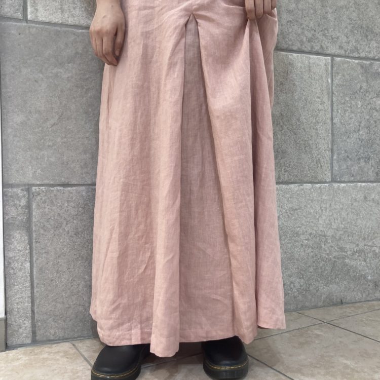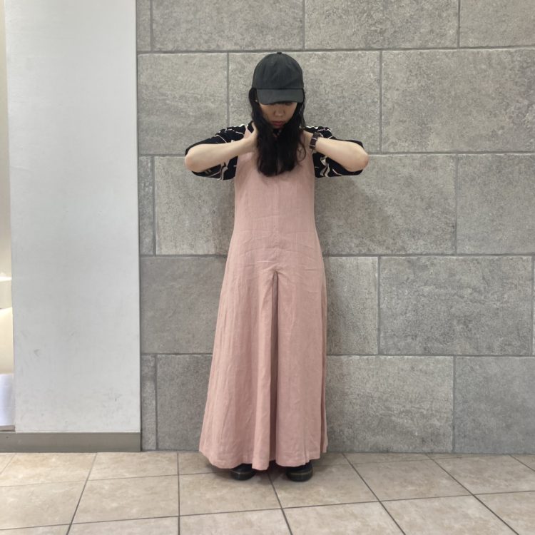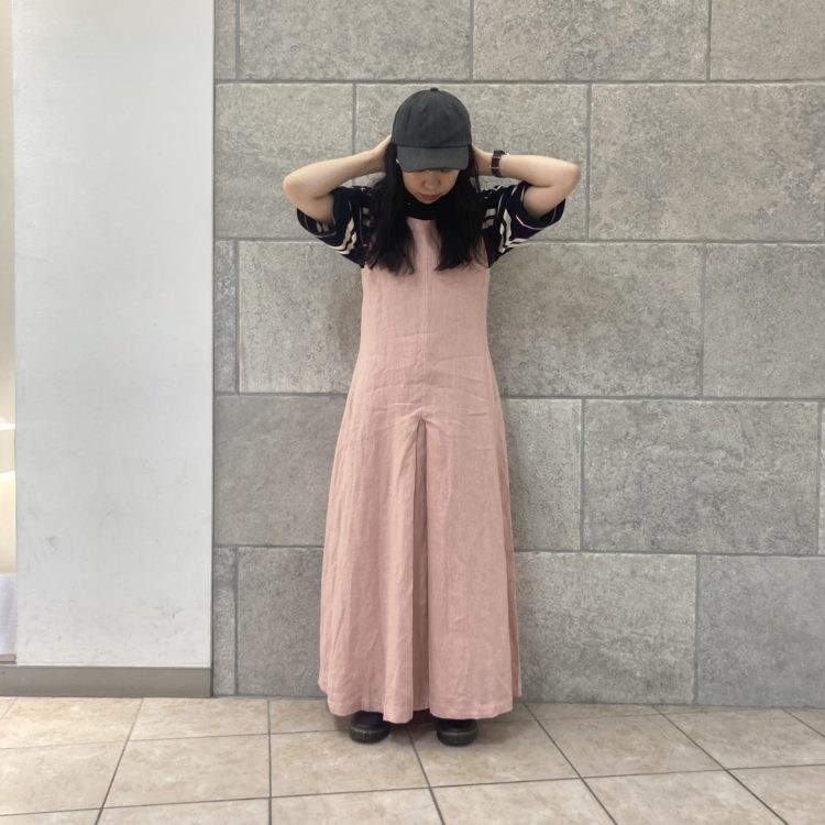 リネン生地のロングワンピース。