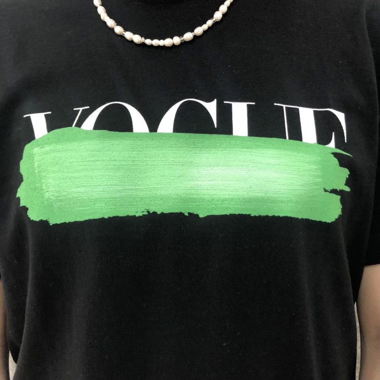 今回のメイン!こちらのTシャツは、某有名ブランドや有名雑誌のロゴがペンキで隠されたシンプルだけれど個性的なデザイン!スタッフ一押しです♡