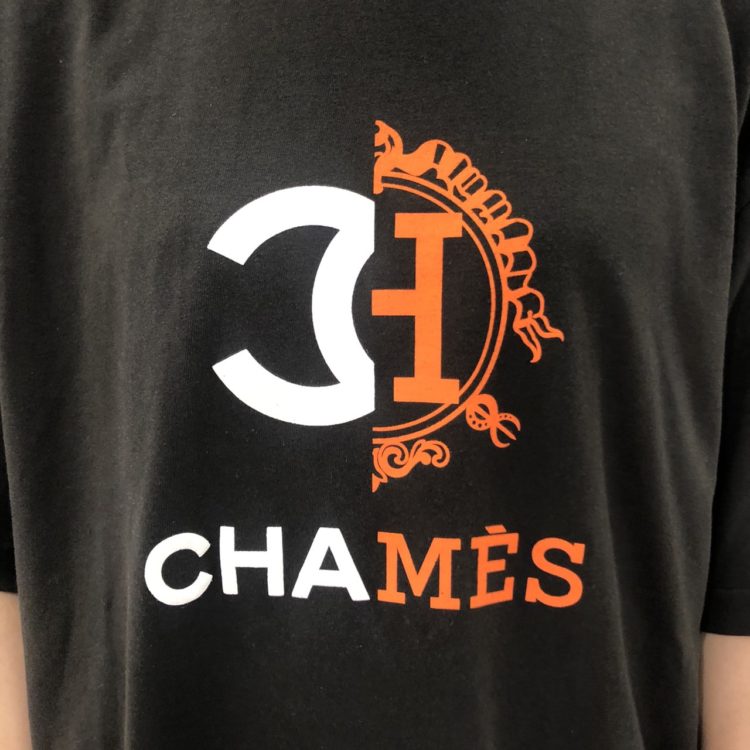 某有名ブランドのロゴが合体した珍しいデザイン!かなりゆったりとしたオーバーサイズです。