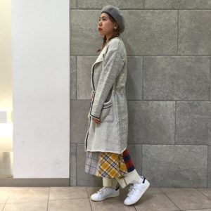 ストライプ柄を使っていますが、トップスに柄物を合わせても不思議とゴチャゴチャに見えない★★