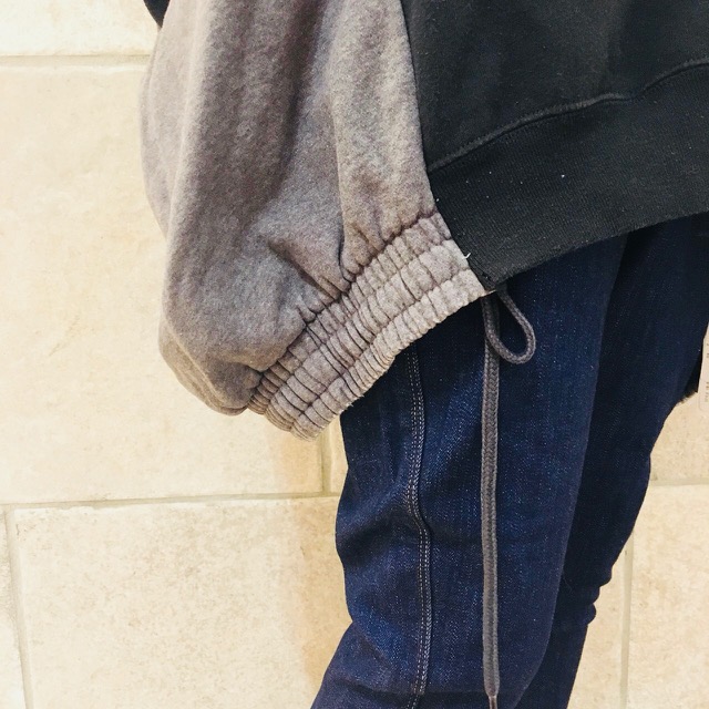 袖部分が『NIKE』のスウェットパンツでリメイクしているんです!!