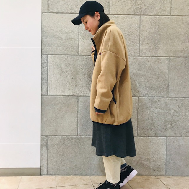 パーカーやワンピース、ニットなどボリュームがあるインナーを加えても着膨れしないシルエット◉