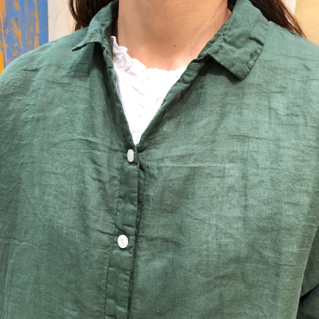 【SUN VALLEY】 15綿麻ガーゼ衿フリルシャツ no.008-926-SK50101 col.ホワイト/ナチュラル/イエロー/ネイビー/ラベンダー size.M price.¥4.900+tax ノースリーだけでは、、 という方にもオススメ!! 綿麻混合の半袖シャツが登場ですよ♡ フリル衿がまた可愛らしく 身幅がたっぷりなので 身体に密着しない!! この夏涼しく着ていただけますよ!! お次はこちら