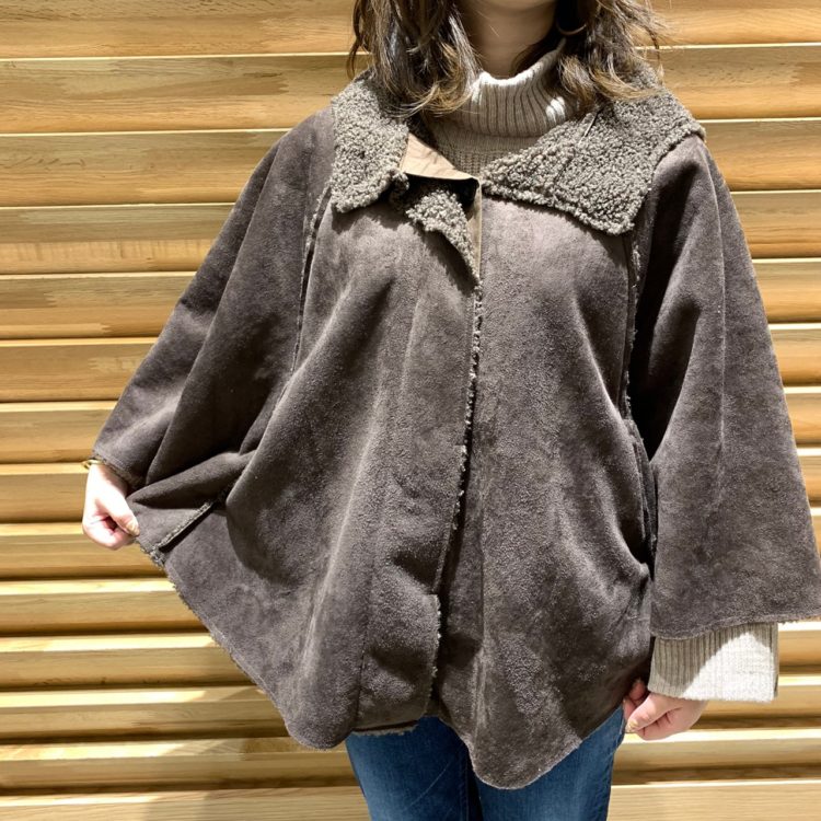 【フェイクムートンポンチョフードジャケット】 no.142-940-0023199 size.M color.キャメル、ダークブラウン price.¥9,900+tax ZAMPAより入荷したのは やわらかなフェイクムートンアウター♡