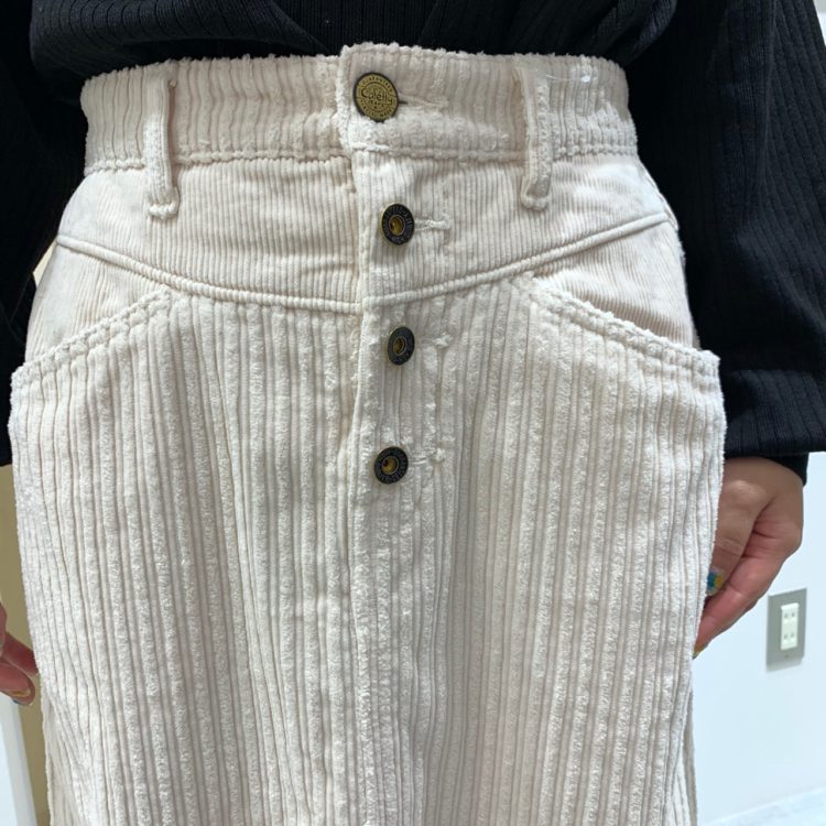 【コーデュロイスカート】 no. 404-945-0004036 size.S、M、L color.チャコール、ブラウン、ナチュラル price.¥7,900+tax Aラインのシルエットで女の子らしいスカート! 今年人気のコーデュロイですが、 太めと細めの畝になっているので、 普通のコーデュロイスカートとは また一味違う印象に!