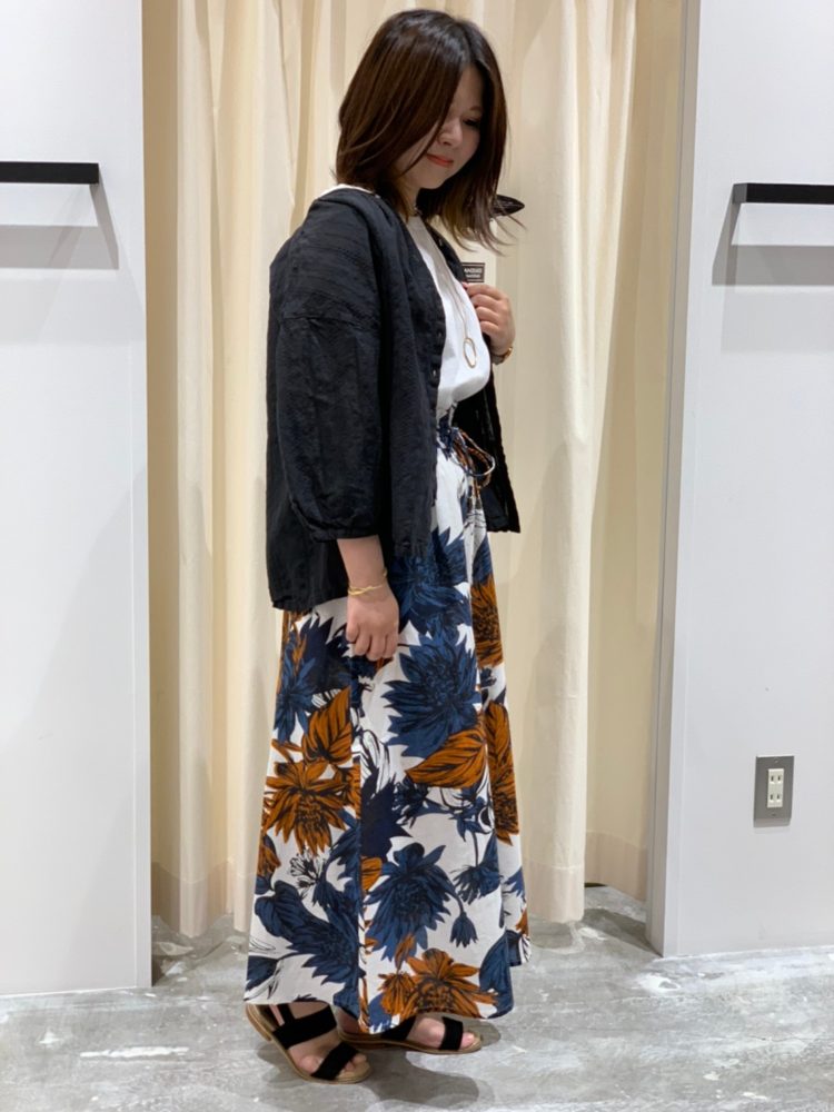 【ボタニカルプリントウエストシャーリングロングスカート】