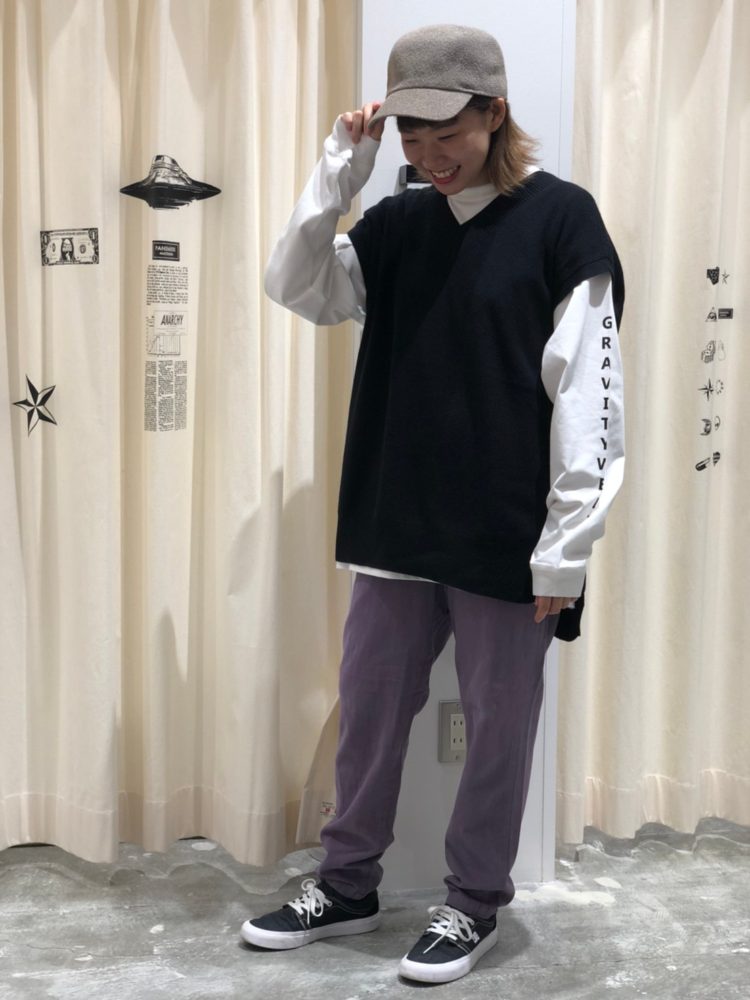 ロンTとベストを合わせたボーイッシュなコーデ。