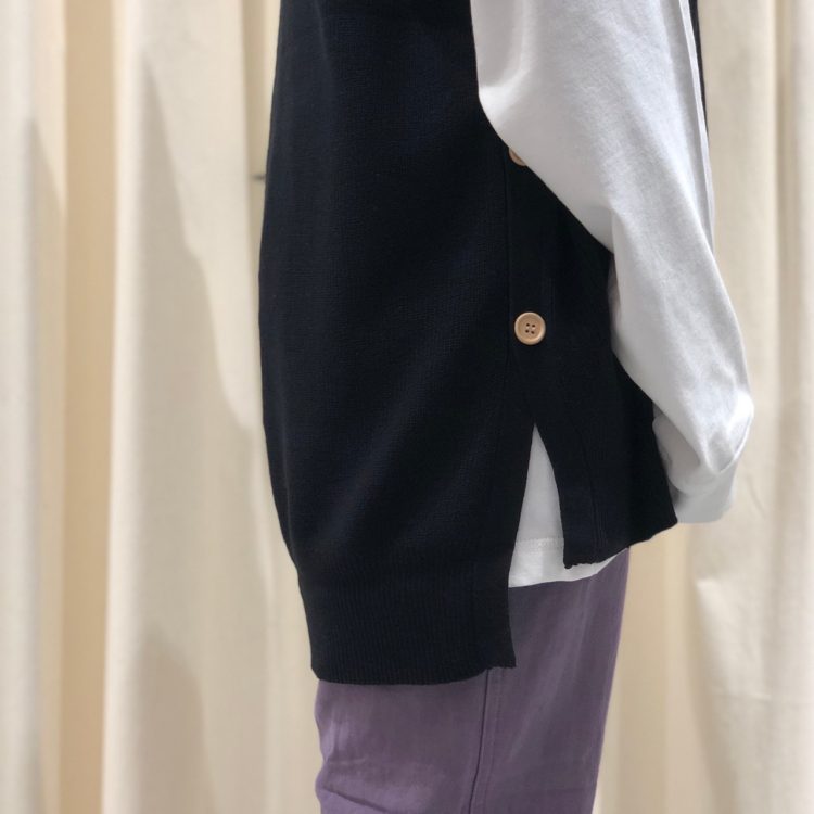 スリットの深さはボタンでお好みに調整が可能なニットベスト