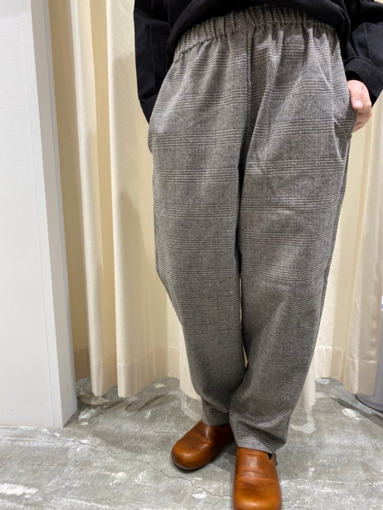 ▼グレンチェック9分丈ゆったりテーパードパンツ