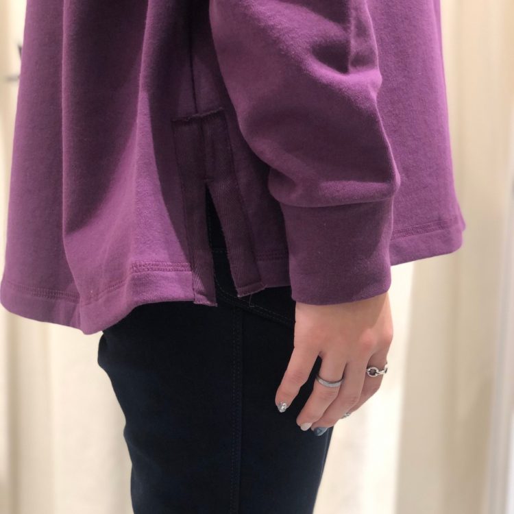 ゆったりしていて、丈はお尻にかかる丈感です。