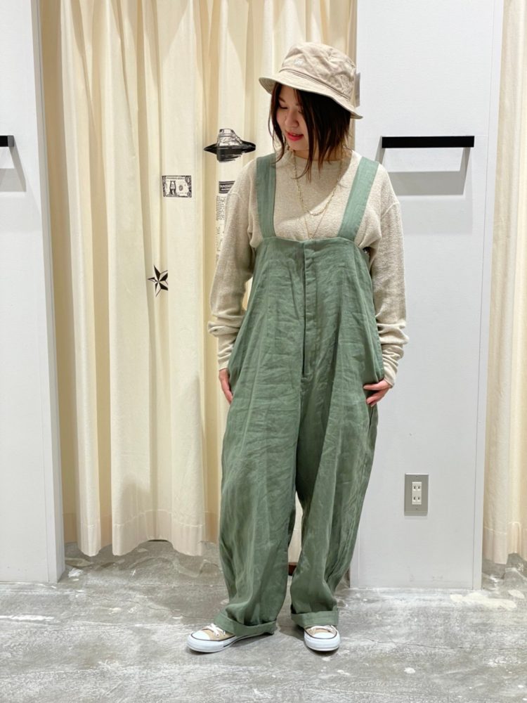 贅沢にリネンをたっぷりと使用したイージーサロペット。