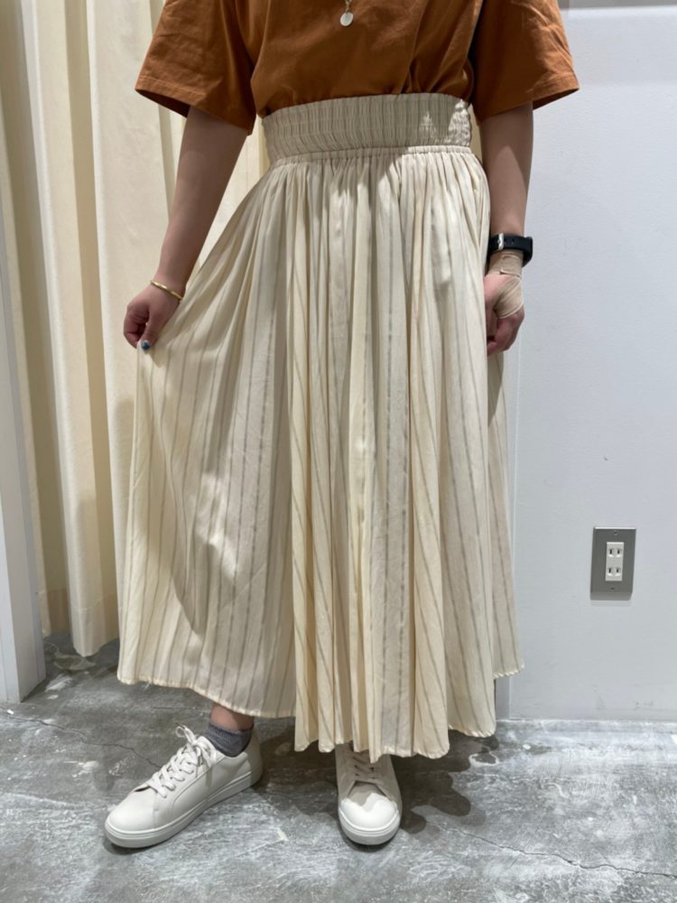 主張しすぎない優しい色味のストライプ柄のスカート!