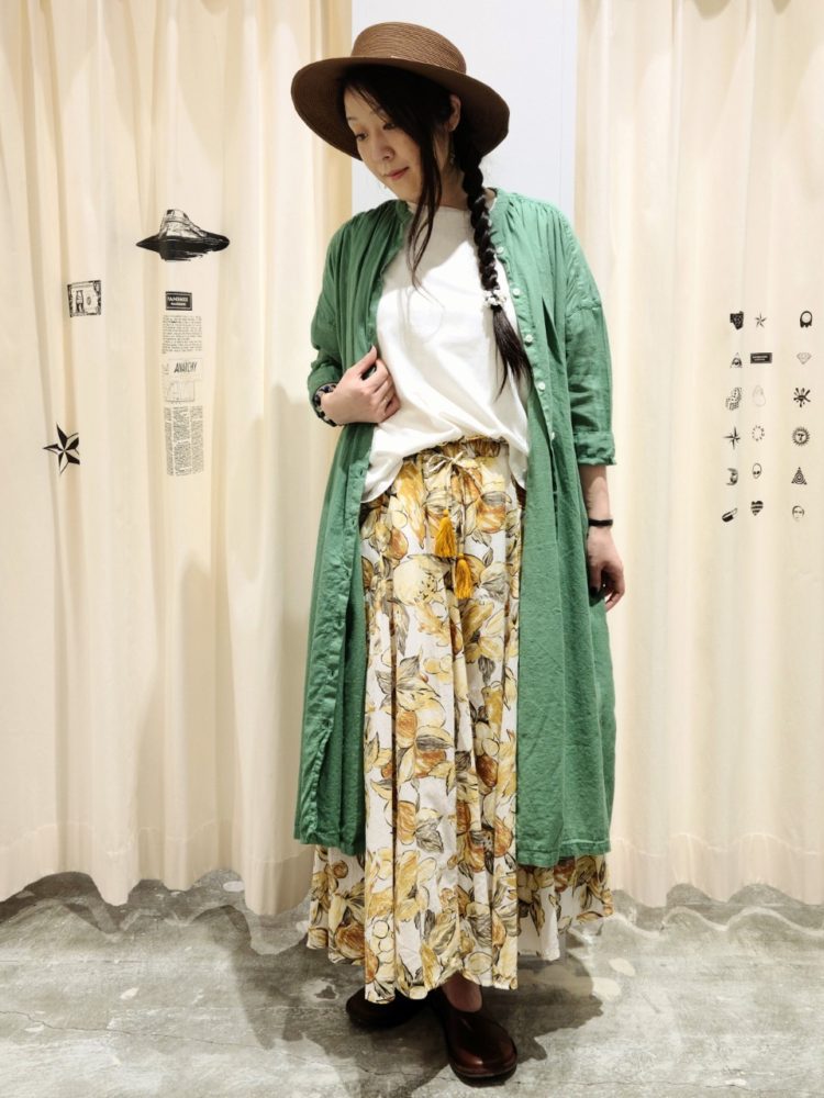 女性らしいガーゼ特有の透け感が涼し気な印象で、コチラもこれからの季節にオススメのアイテムです♪