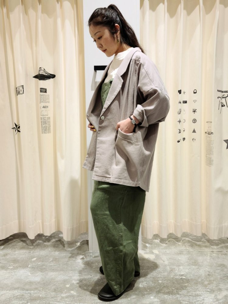 旬の素材《リネン》を使ったサロペットを取り入れたコーディネートです♪