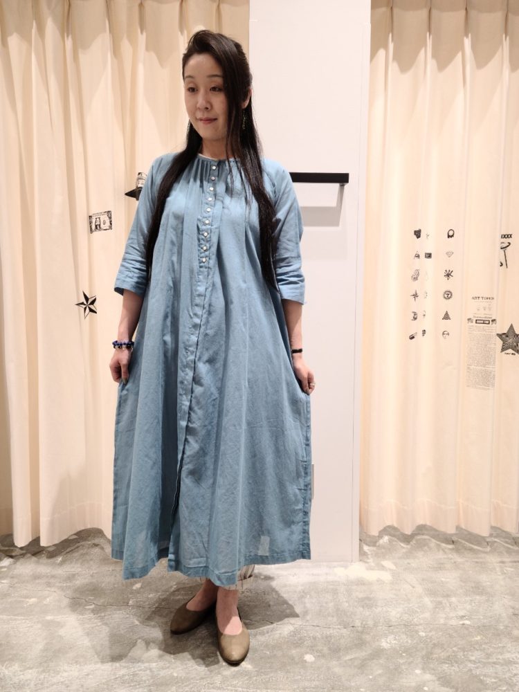 コットンボイル多ボタンワンピース