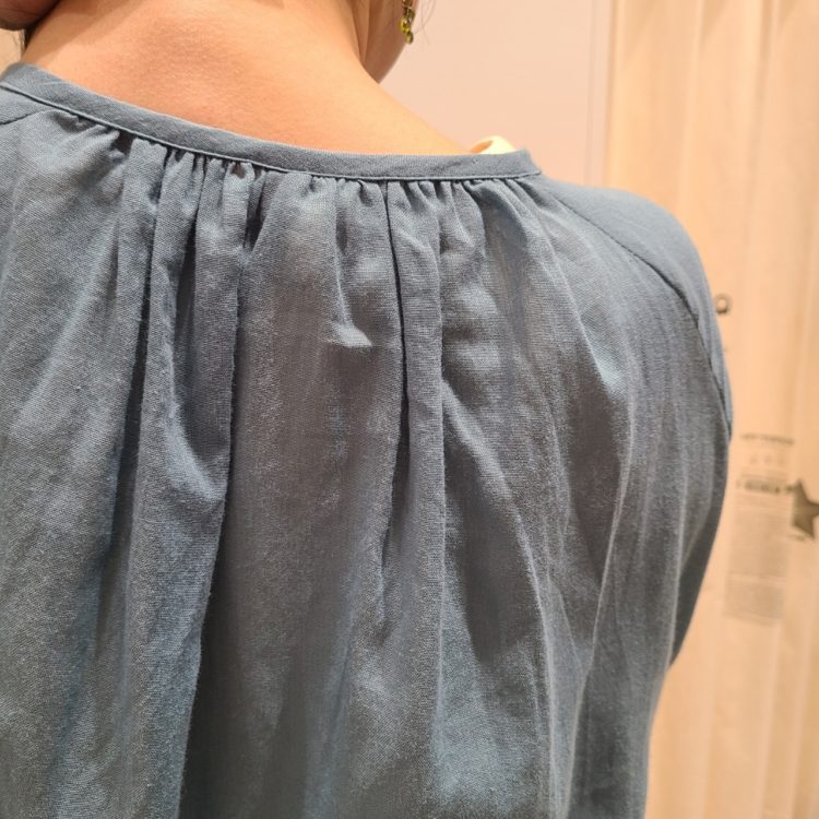 ネックからギャザーを施し、ふんわり広がるAラインシルエットが特徴です。