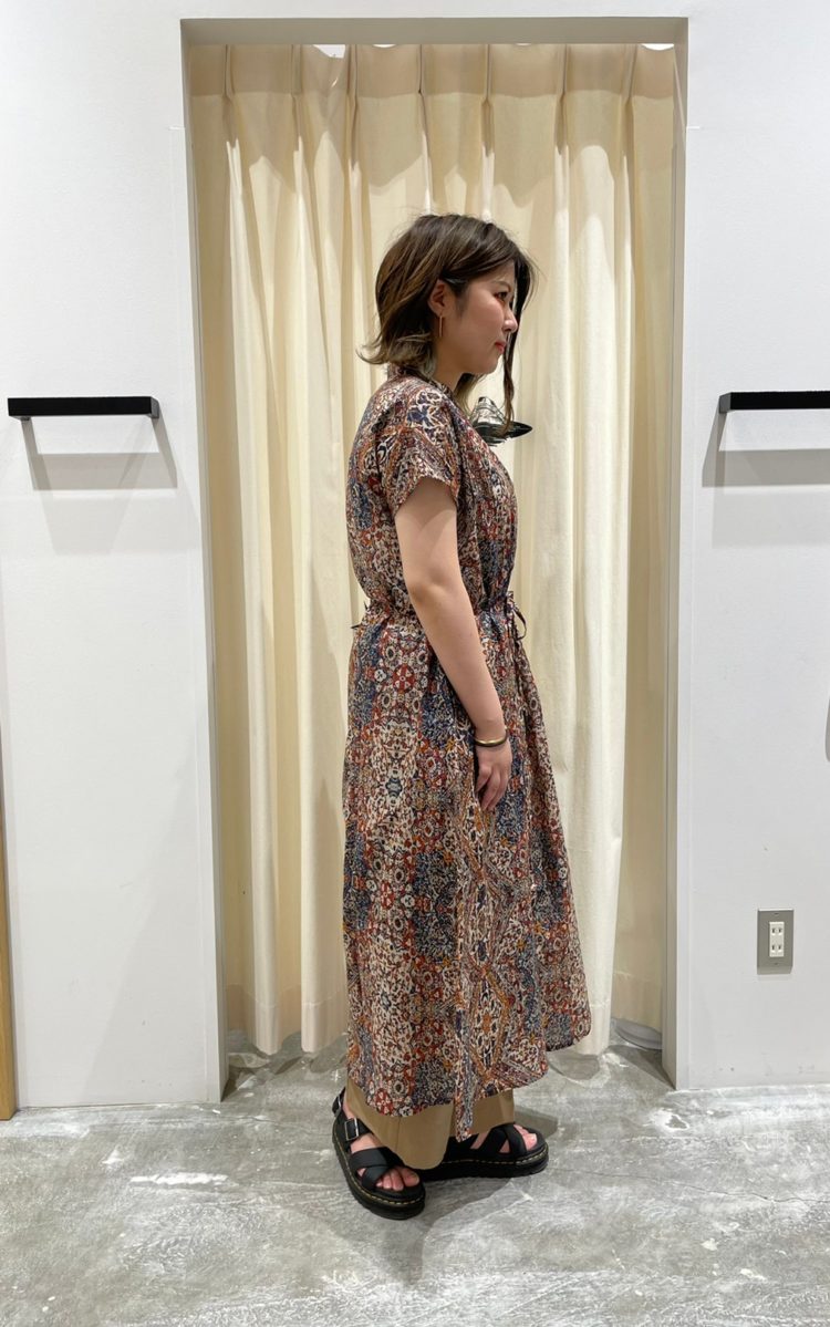 ●インパクトのあるエスニックな柄ワンピでゆるっと涼しげコーデ