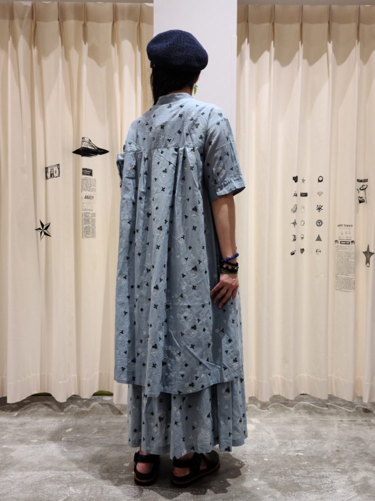 50ボイル総柄刺繍スタンドシャツワンピース5分袖