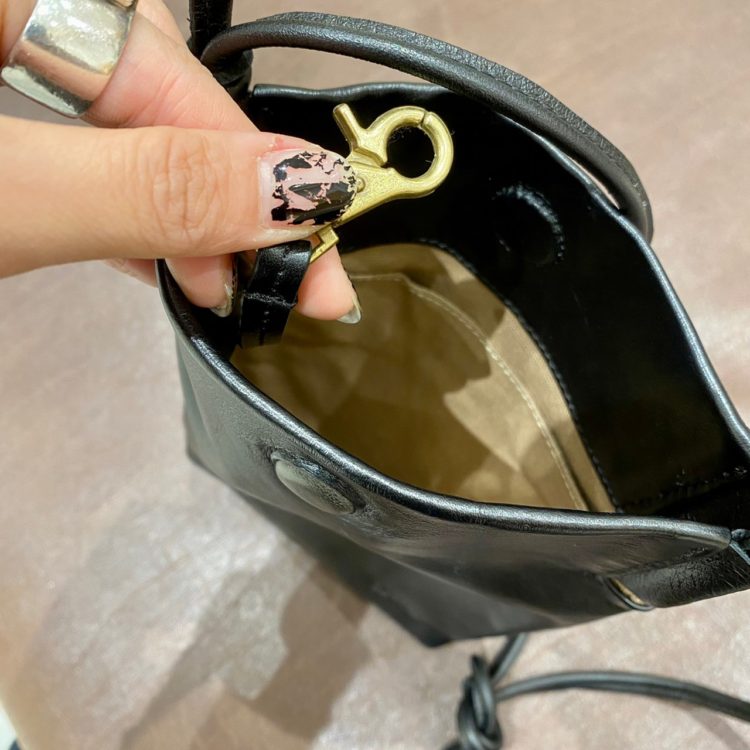 内部には収納した小物が迷子にならないよう鍵などを留められるホック付き◎