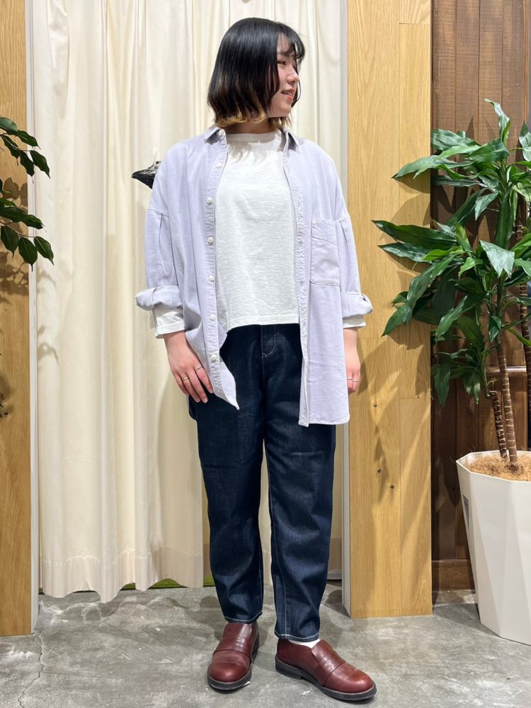 1コーデ目と違い、ゆったりとしたシルエットのデニムでカジュアルに♪