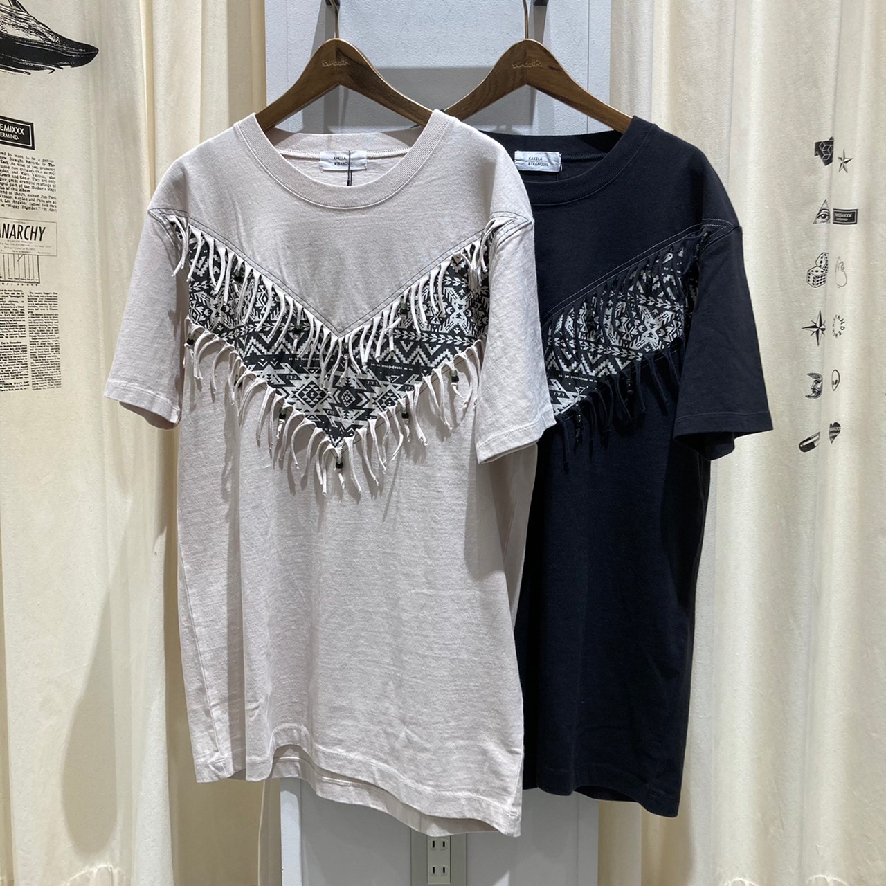 16/0E天竺ハードウォッシュリメイクフリンジロングTシャツ