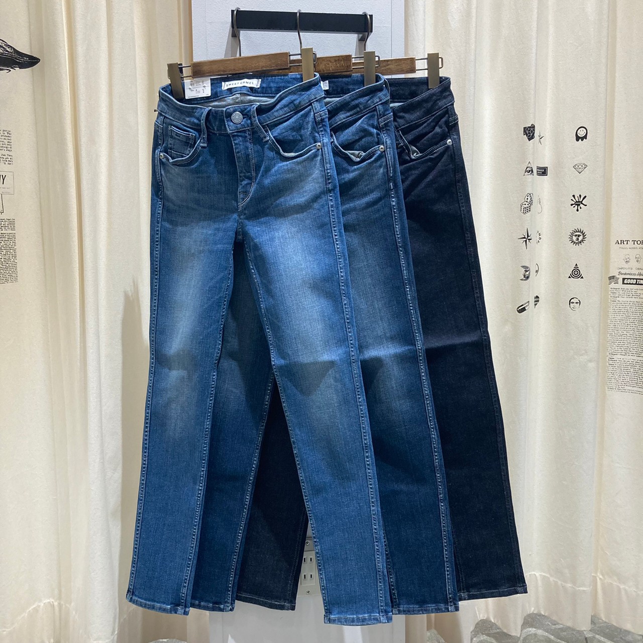 シルエットはウエストから裾にかけてフィットする細身のスキニータイプ。