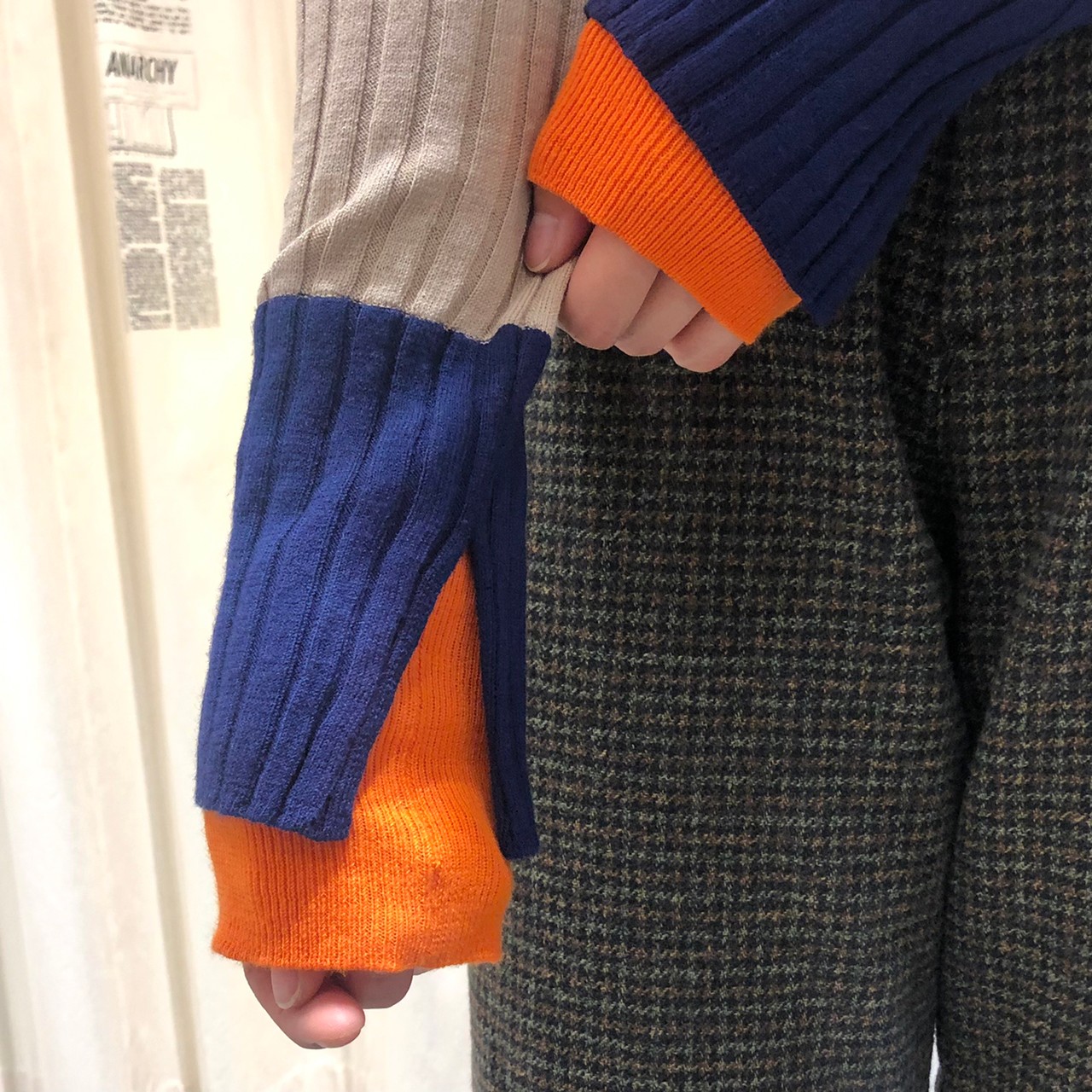 R/Eヤーンレイヤード配色スリーブプルオーバー