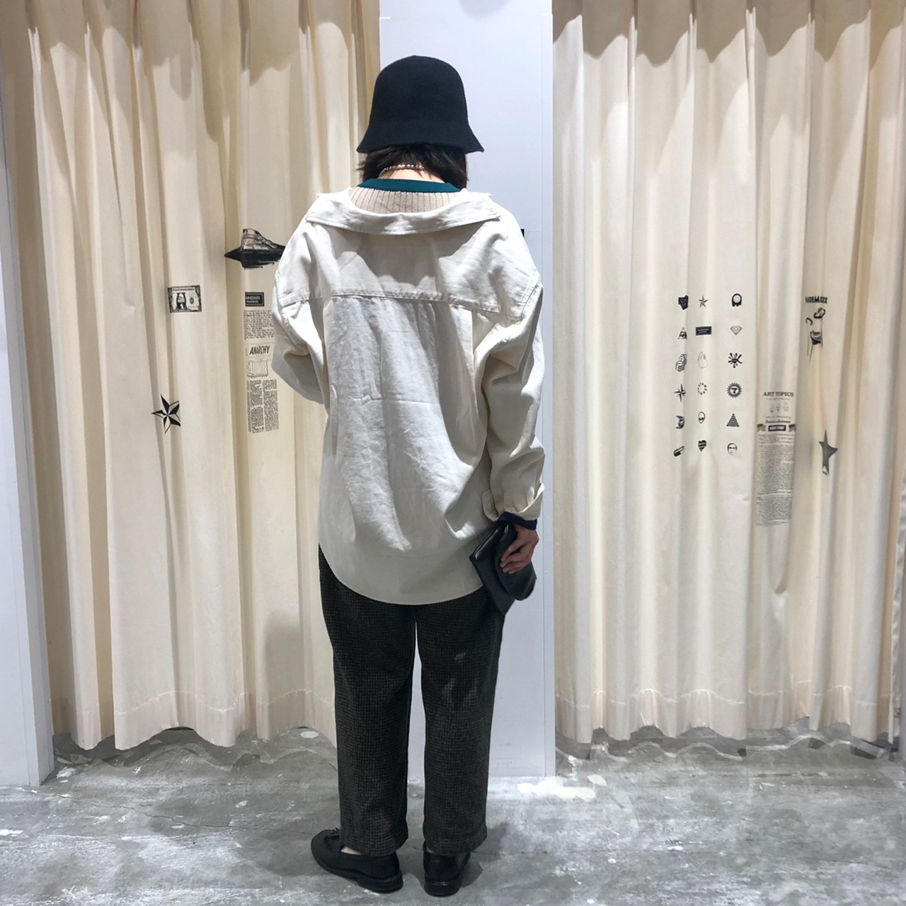 襟首部分をあえて広めに取っているため、メンズアイテムを着用したような落ち感のある雰囲気を楽しんで頂けます^^